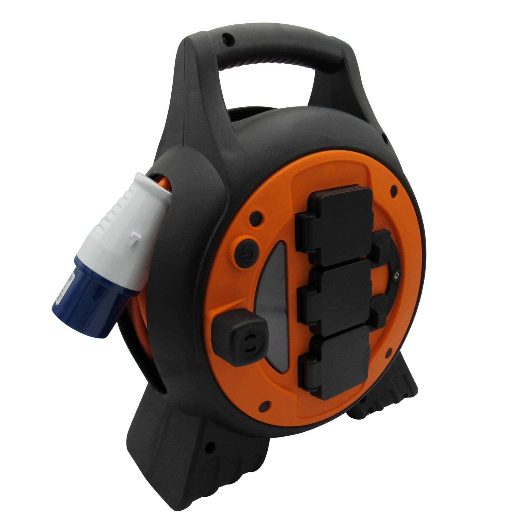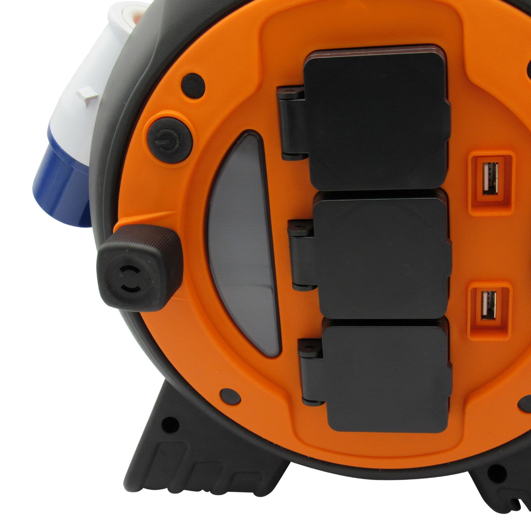 This mains roller will give you all the power you need when you're out and about at the camp site, on a job or anywhere else you might be power isolated. The reel will give your access to three UK 3 Pin plug sockets, two USB ports and an emergency light. The heavy duty outer shell is a bright orange to prevent anyone from tripping over it, making it ideal for work sites.