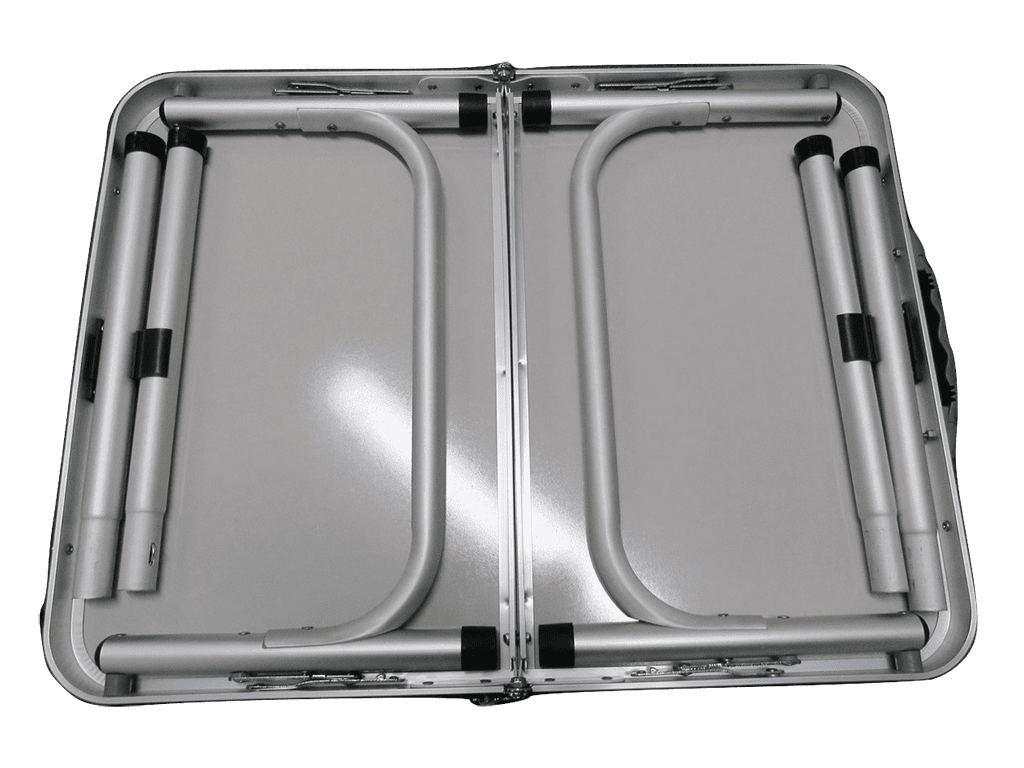 Take our lightweight, briefcase style folding table with you, wherever you go.