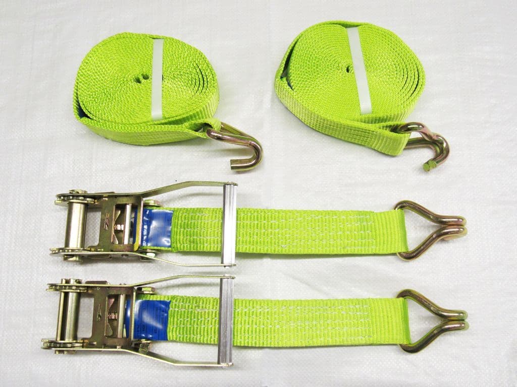 Ratchet Straps 50MM 6M 5T X2 (Tie Down Heavy Duty Cargo Lashing Recovery Claw J Hook Hi Vis)