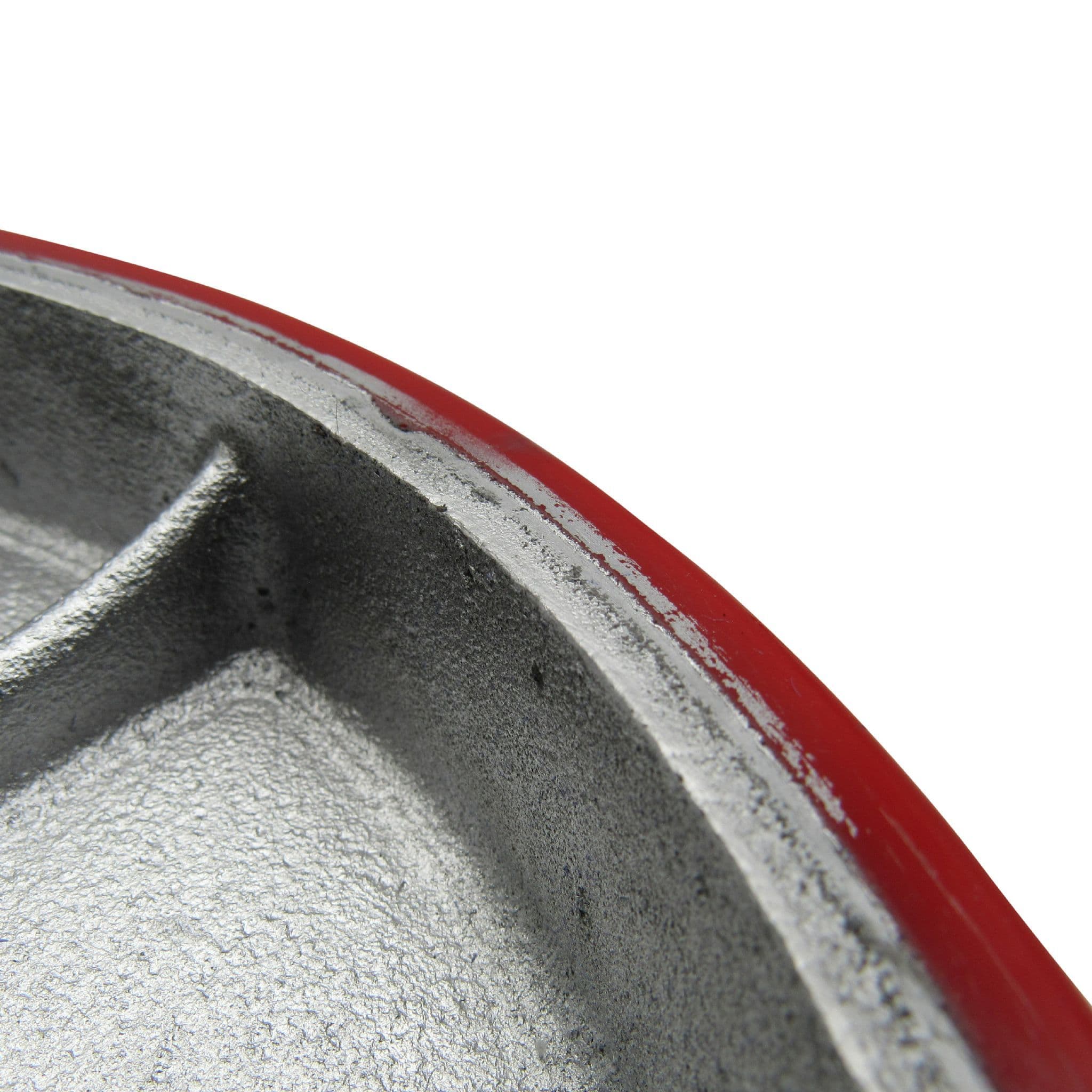 This cast iron pallet truck wheel has a polyurethane tyre and could be the ideal replacement for a broken wheel.